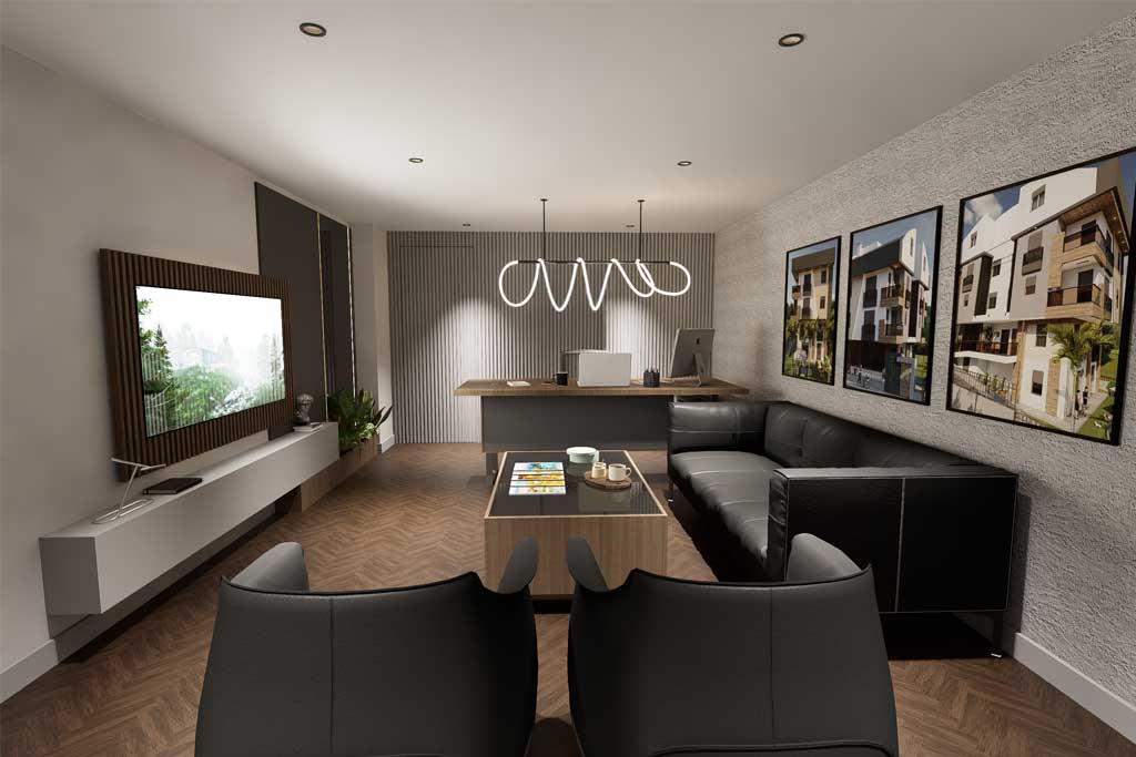 In this real estate office project, all interior elements were custom-designed, manufactured, and installed to reflect the brand’s identity and provide a functional, welcoming environment for both clients and staff.